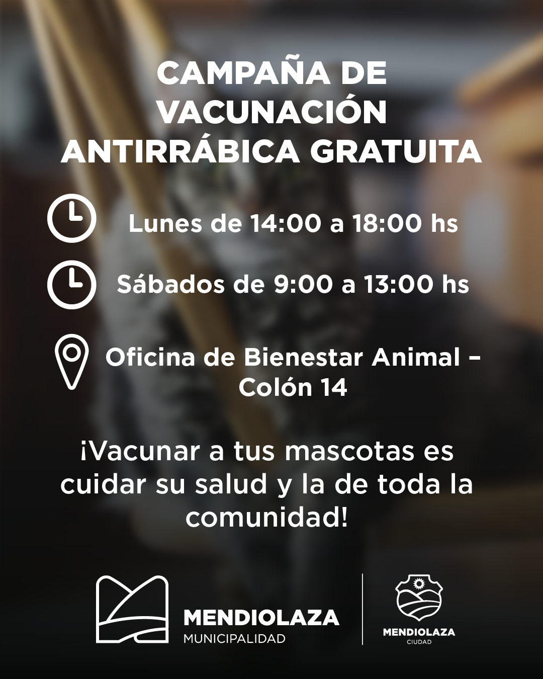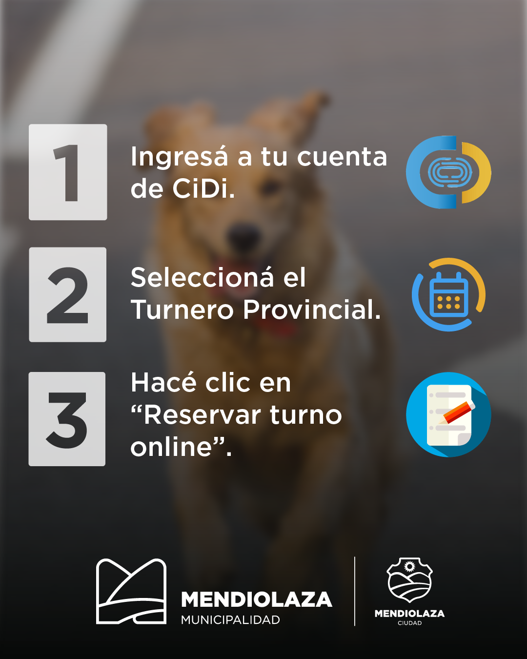 La Municipalidad de Mendiolaza informa que se encuentra habilitado el sistema de turnos para la Campaña de Vacunación Antirrábica.