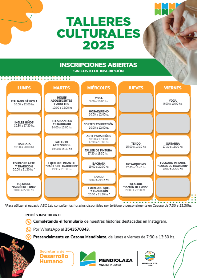 A continuación, compartimos el cronograma actualizado de talleres con sus días y horarios: